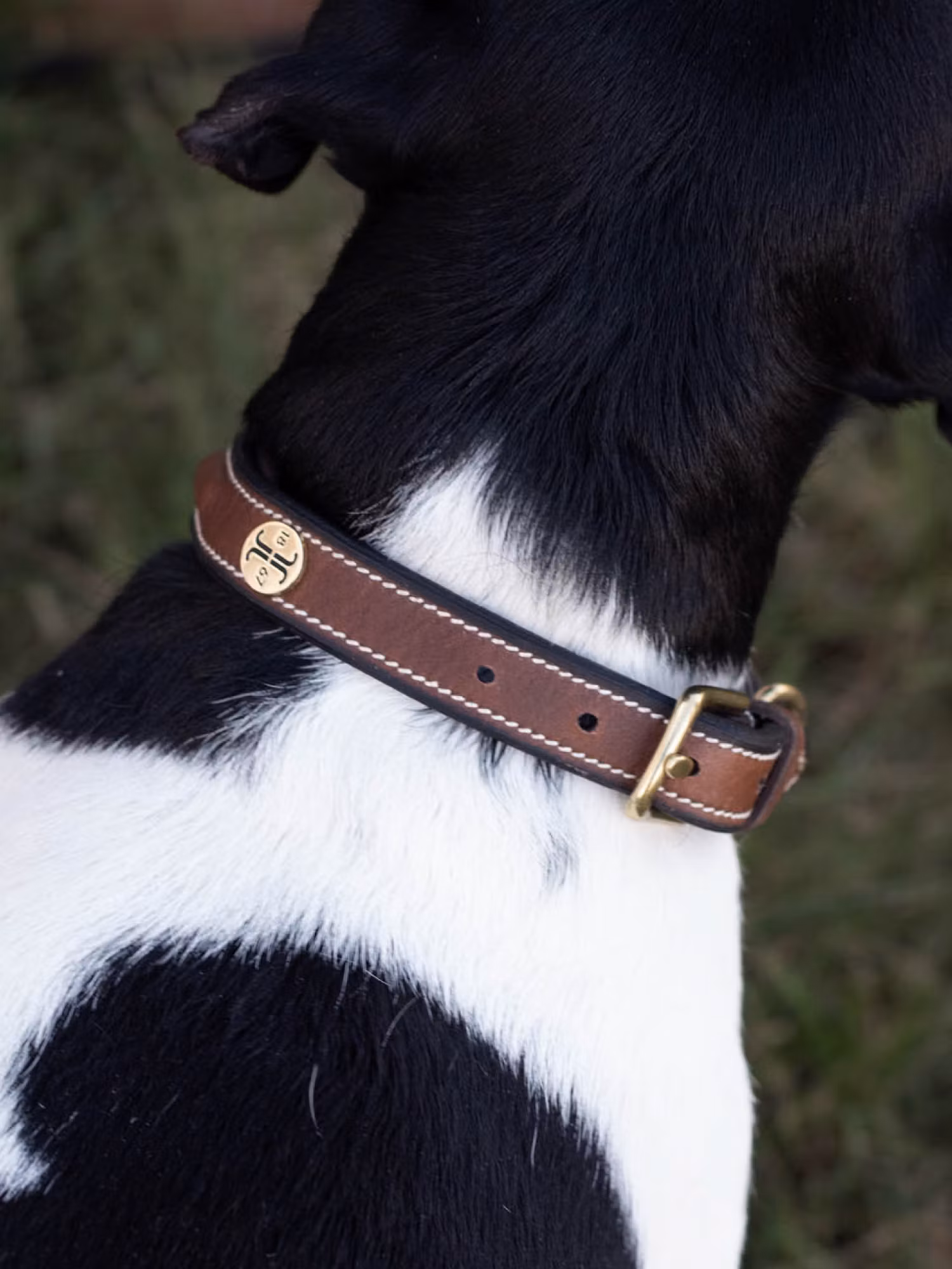 Hundhalsband i mjukt oljat läder och mjukt skönt foder på insidan. Arezzo hundhalsband har detaljer som ljusa dekorsömmar och rundade mässingspännen.
