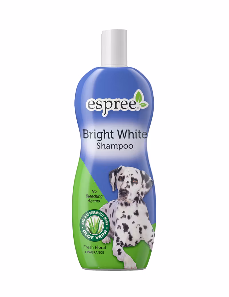 Bright White Shampoo är formulerad med ett optiskt ljusningsmedel för att återställa briljansen till vita och ljusa pälsar och lämnar en fräsch och glänsande päls. Den innehåller även Aloe vera, provitamin B5, jojobaolja och kokosnötsbaserade rengöringsmedel som återfuktar och rengör på djupet.