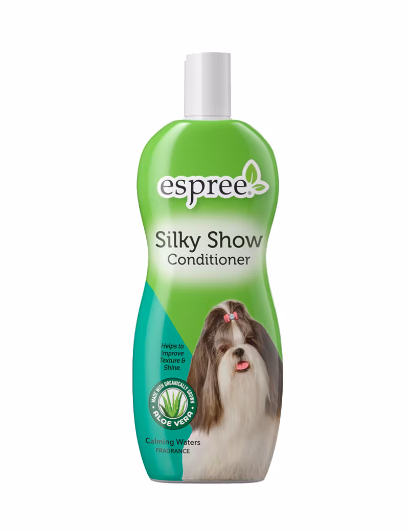 Silky Show Conditioner är formulerad med sidenprotein och jojobaolja för att balsamera och återfukta torra och skadade pälsar. Denna lyxiga formula med Aloe vera och provitamin B5 hjälper till att förbättra textur, glans och hanterbarhet. För bästa resultat, använd tillsammans med Silky Show Shampoo.