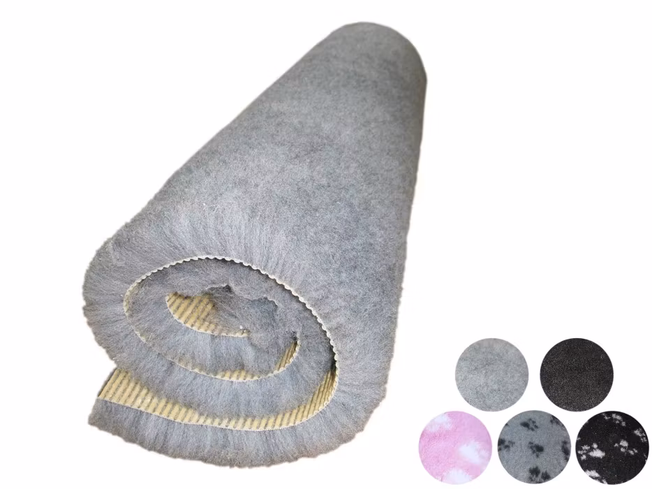 En mjuk och slitstark hundfäll med gummerad baksida.