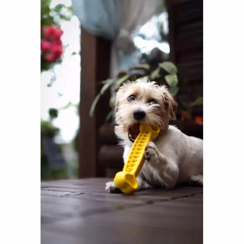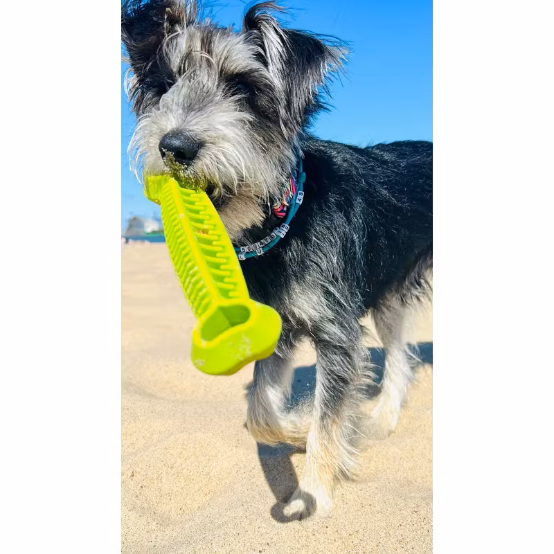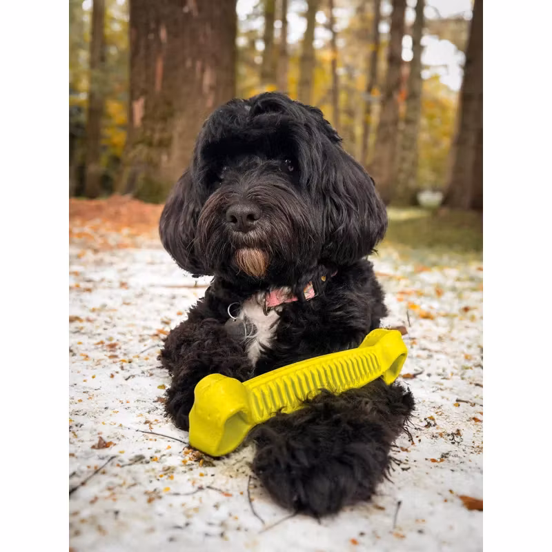 Fiboo’s populära Fiboone Dental finns nu i en större storlek. Bidrar till bättre munhälsa genom sin taggiga utformning som gör att den rensar mellan tänderna. Du kan även gömma små belöningsbitar eller annat gott i den. Den är hållbar och flyter på vatten. Färgen på leksaken säkerställer synligheten under alla förhållanden.