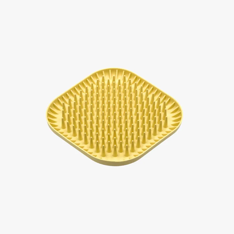 Fiboowl Spiky är en kombinerad slickmatta och skål som fördröjer ätandet med sina mjuka taggar och har en lugnande och avslappnande effekt. Tack vare att den har högre kanter än en vanlig slickmatta, så minskar den spill runt omkring. Tillverkad av mjuk plast med bra friktion mot golvet, så att den inte glider. Tål att frysas.