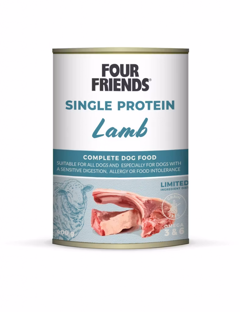 70% lamm (40% lever, lunga och mage från lamm, 30% lammkött), ärtmjöl, lignocellulosa, kalciumkarbonat.