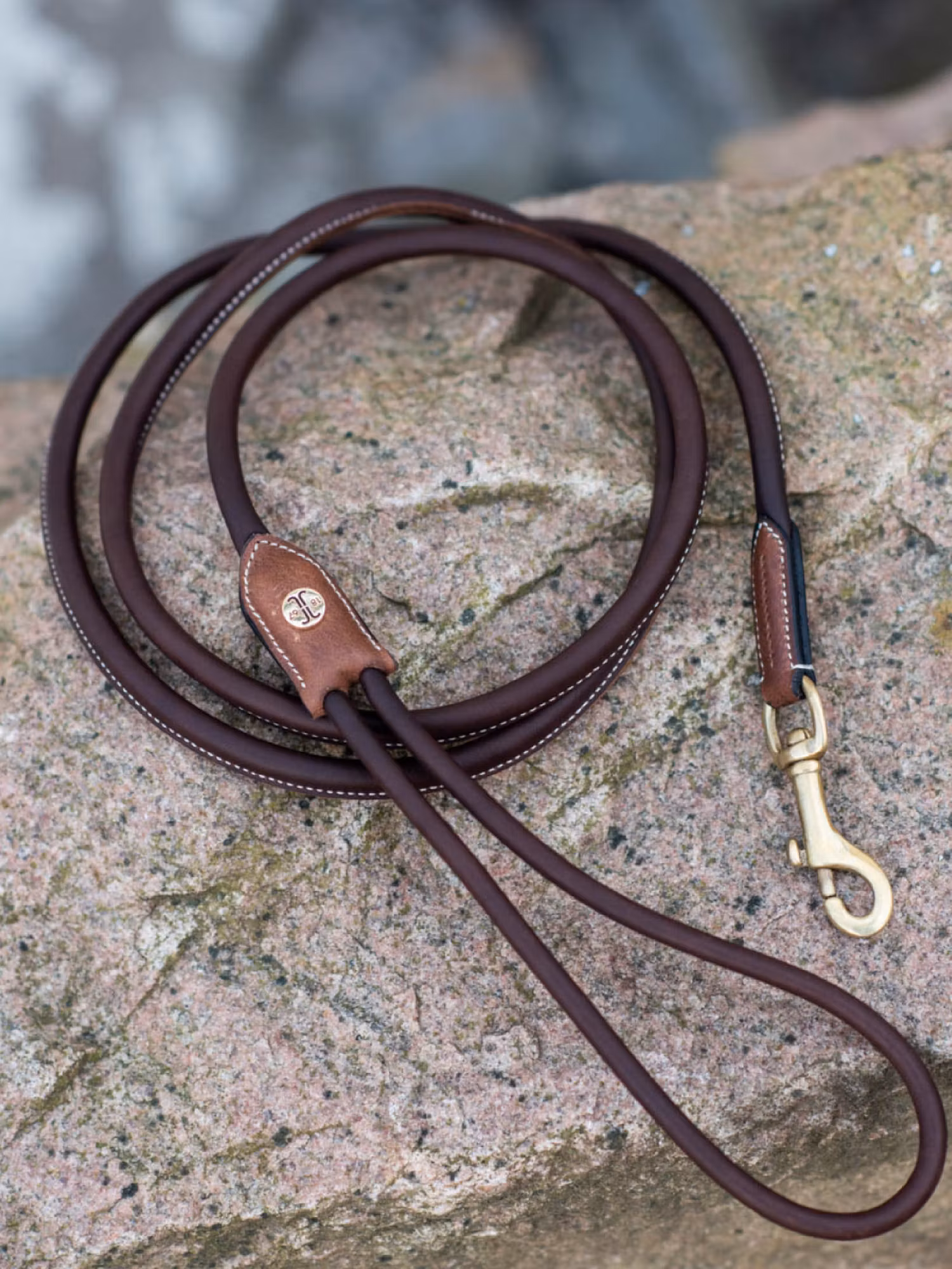 Snyggt rundsytt koppel i mjukt oljat läder. Jacsons hundkoppel Alba har detaljer såsom mässingsspänne och ljusa dekorsömmar - matchas väl med något av deras hundhalsband. Kopplet har en längd på 180cm och finns i tjocklekarna 7mm och 10mm.