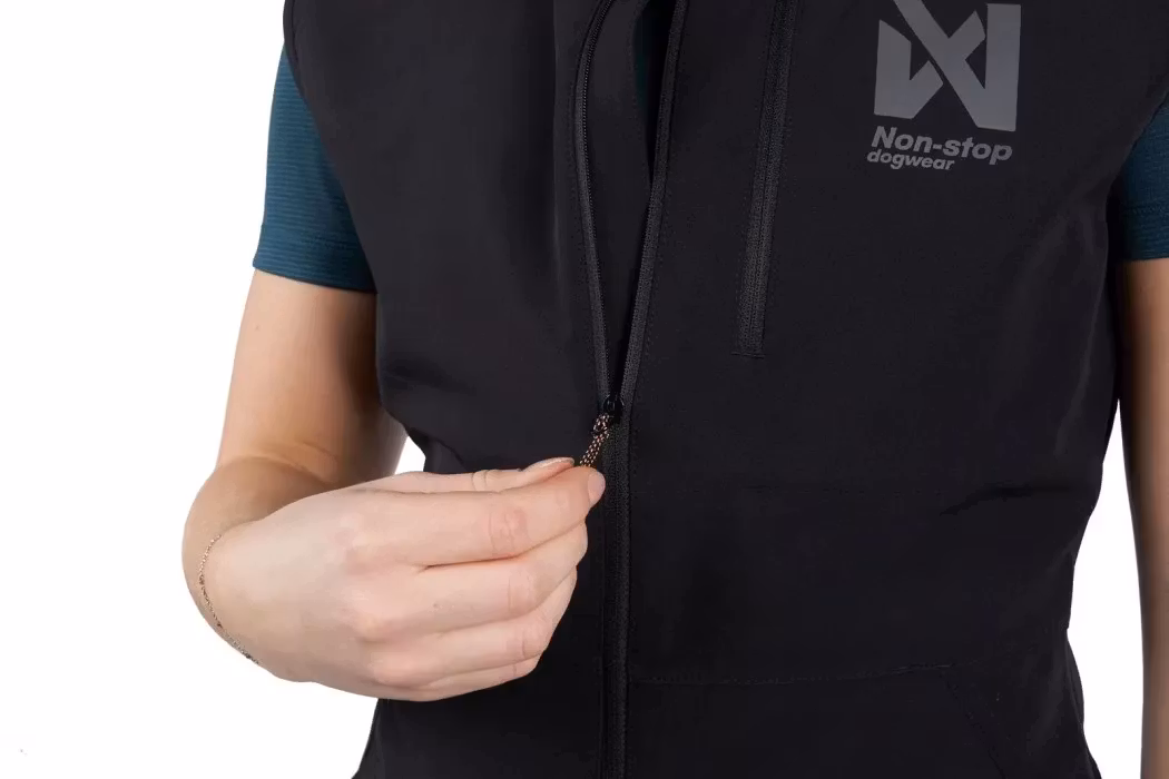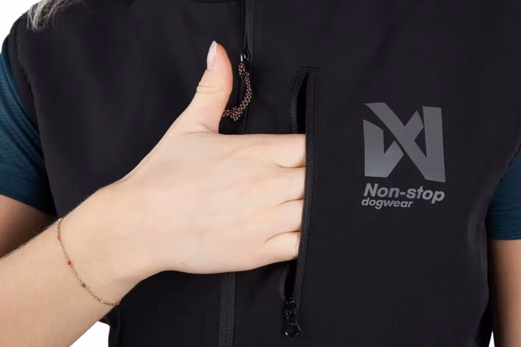Västen är tillverkad av ett ultralätt softshellmaterial, så lätt att du knappt märker att du har den på dig. Den erbjuder nödvändiga fickor som uppfyller en hundförares behov. Den stora öppna fickan på baksidan ger gott om utrymme för bollar, dragleksaker och andra leksaker utan att dessa studsar runt när du går eller springer. Två rymliga framfickor ger snabb tillgång till godis och har fästöglor för att säkra små föremål som visselpipa, påshållare eller bilnycklar. Bröstfickan med dragkedja erbjuder en säker plats för din mobiltelefon och andra värdesaker.