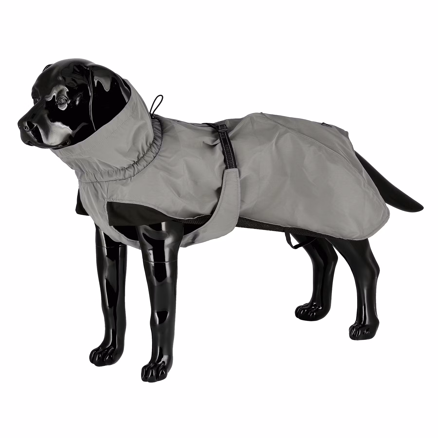 Täcket har ett vattentätt (3000mm) fullreflekterande tyg och ett lättare meshfoder. Skyddar mot regn, blåst och kyla. Reflekterande detaljer, justerbar halsöppning, krage och besnöre samt en öppning på ryggen för sele. Obs! Produkten har felmärkning på etiketten!