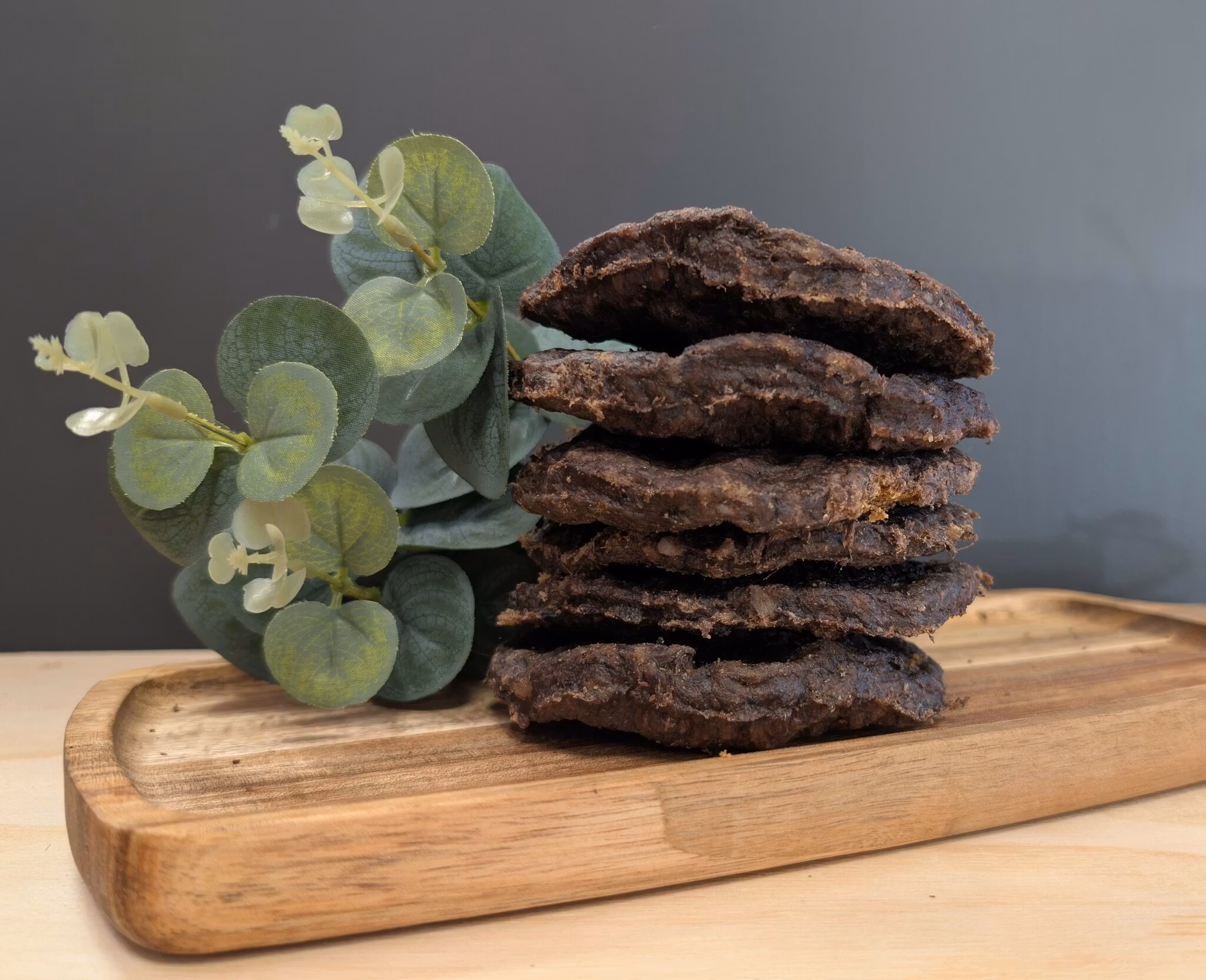 Viltburgare - en smakrik blandning av svensk vilt som torkats i "kakor" likt burgare. Går att dela i mindre bitar men är något kraftigare.
